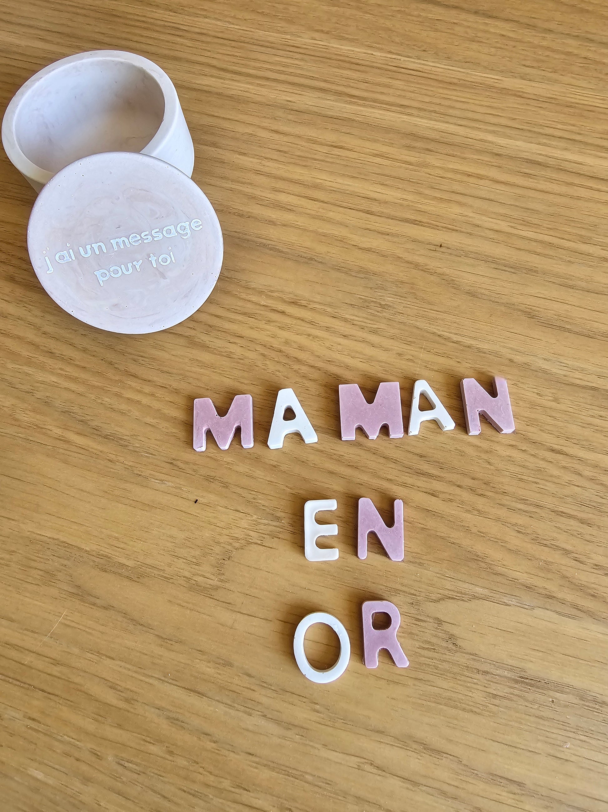 Pour la Fête des Mères, découvre mes petites boîtes à messages personnalisées, faites avec amour en jesmonite.