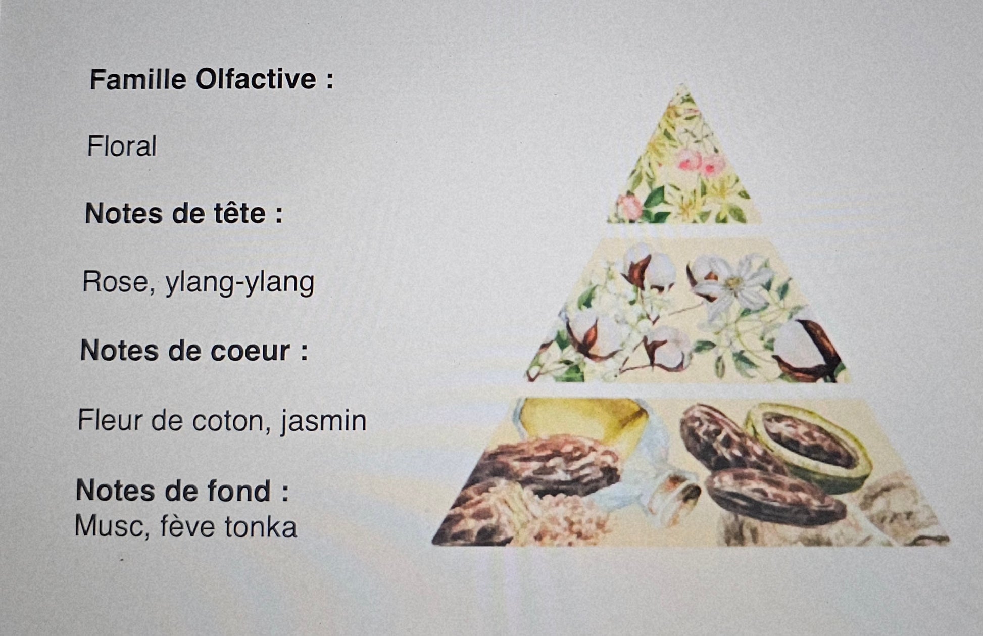 Fragrance de Grasse au choix : fleurs de coton, épicée, gourmand sucré, floral.