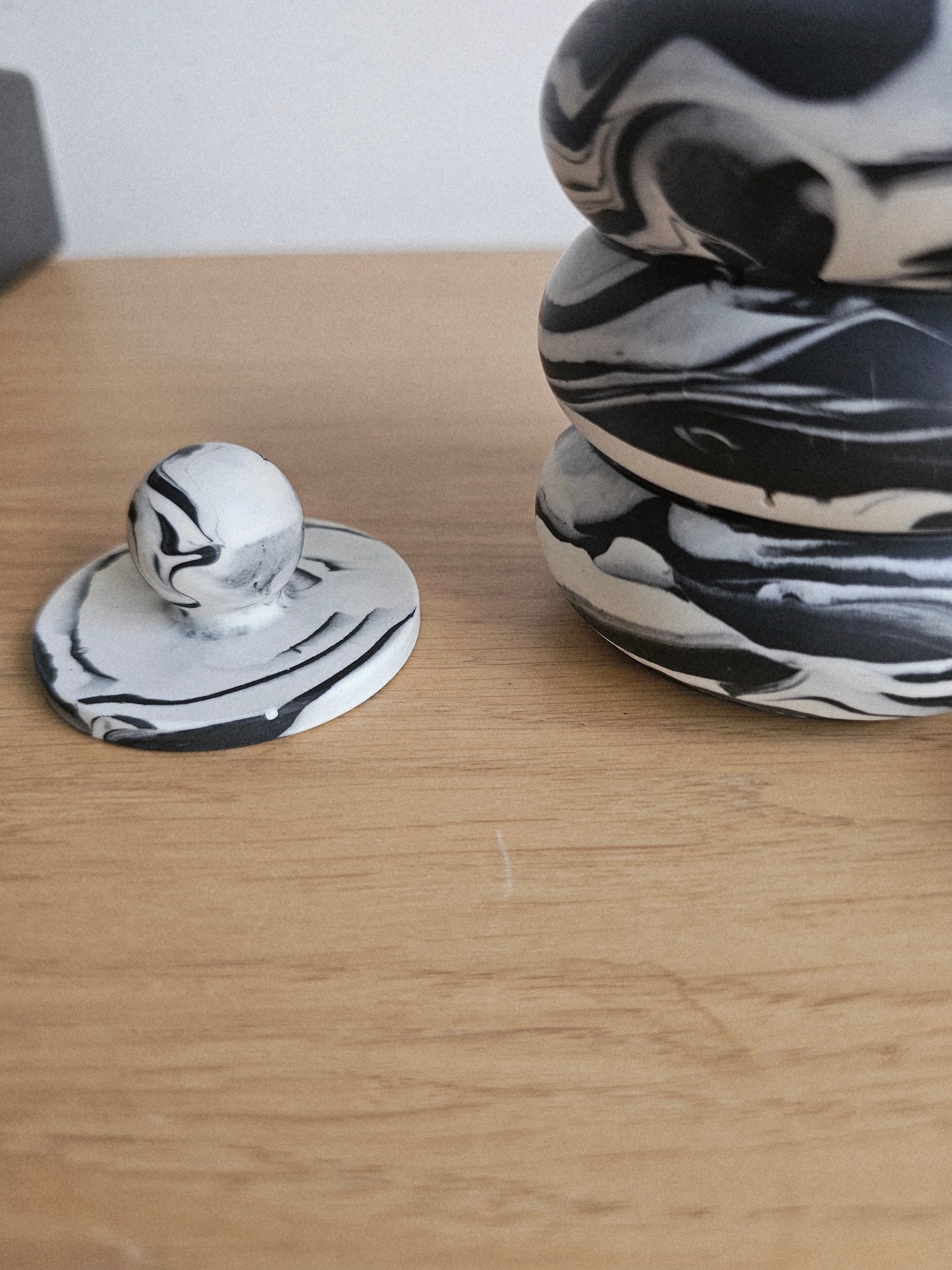 Chaque pièce est coulée à la main dans mon atelier, en jesmonite, une matière écoresponsable à base de pierre et d’eau, reconnue pour sa solidité et son aspect minéral unique.