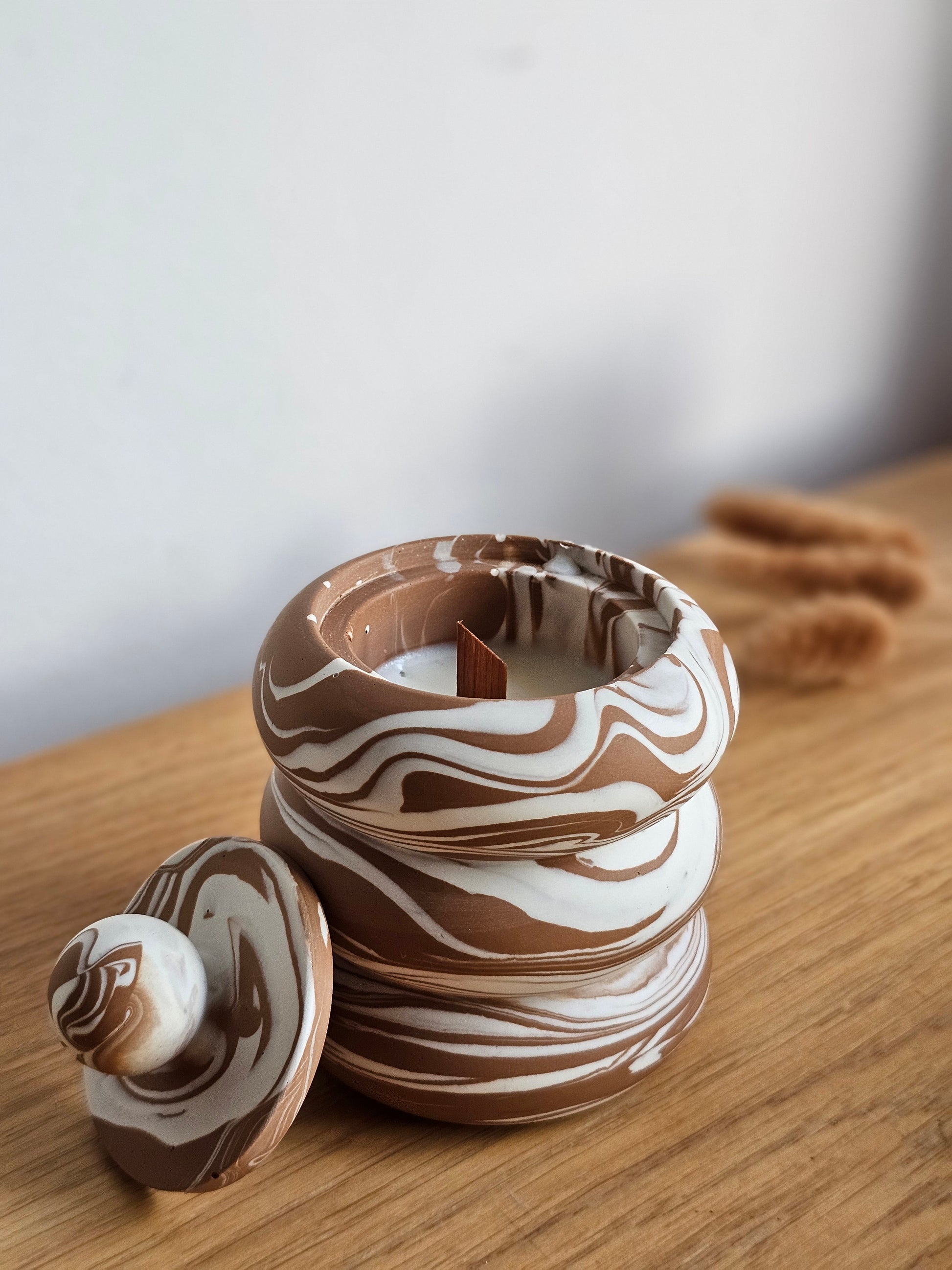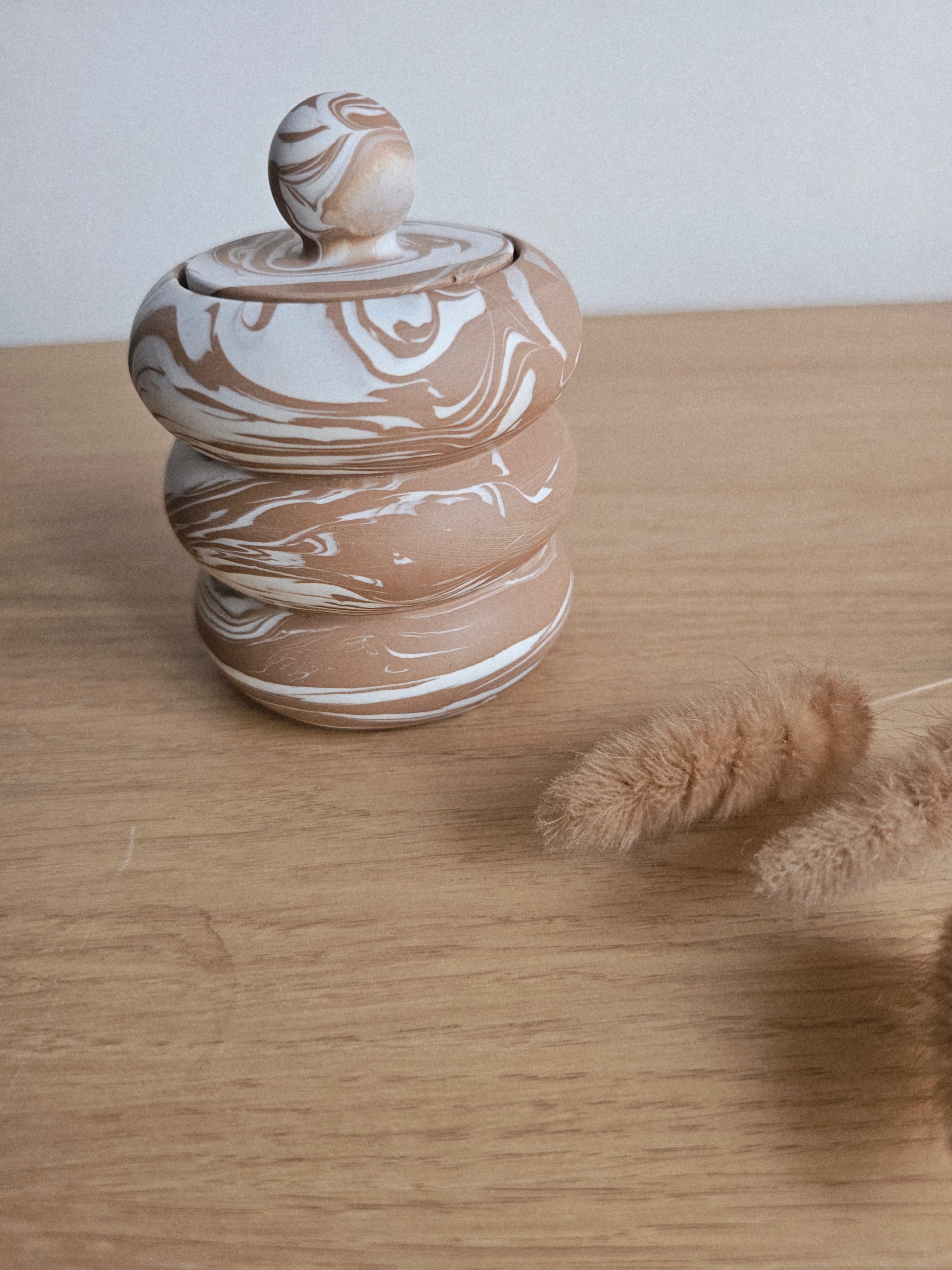 Cette bougie est pensée comme un objet décoratif à part entière : une touche de douceur dans votre intérieur, qui trouve naturellement sa place sur une table, une étagère ou un coin détente.